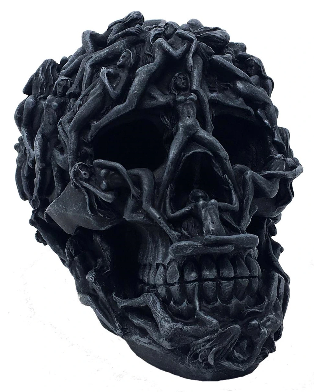 Schwarzer Totenkopf mit in sich verschlungenen Frauenkörpern